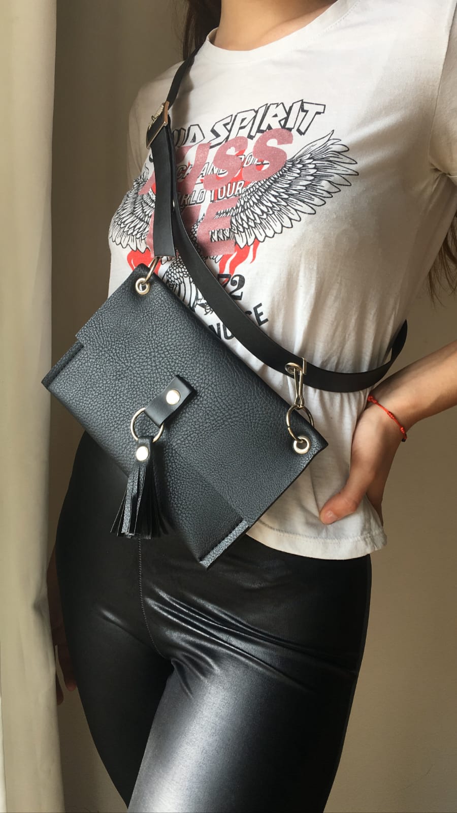 Porta celular estilo sobre. Se puede usar como riñonera, como cartera o como cinto. Medidas: 14cm x 22cm