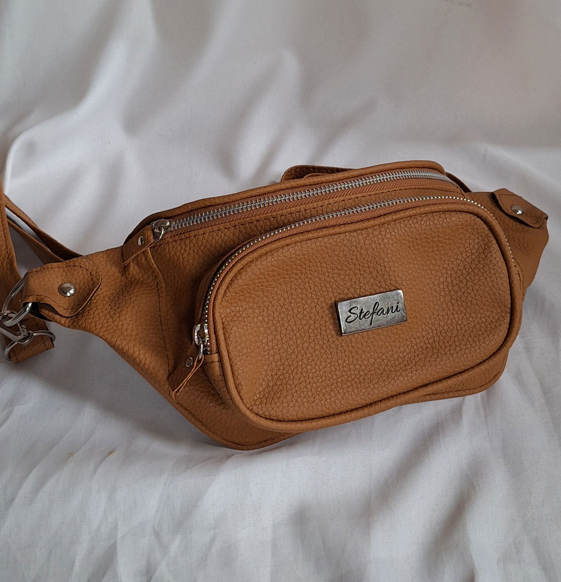 Riñonera grande, con doble bolsillo. De interior forrado y con correas desmontables y regulables. Medidas: 35cm de ancho, 15 cm de alto y 7cm de profundidad.